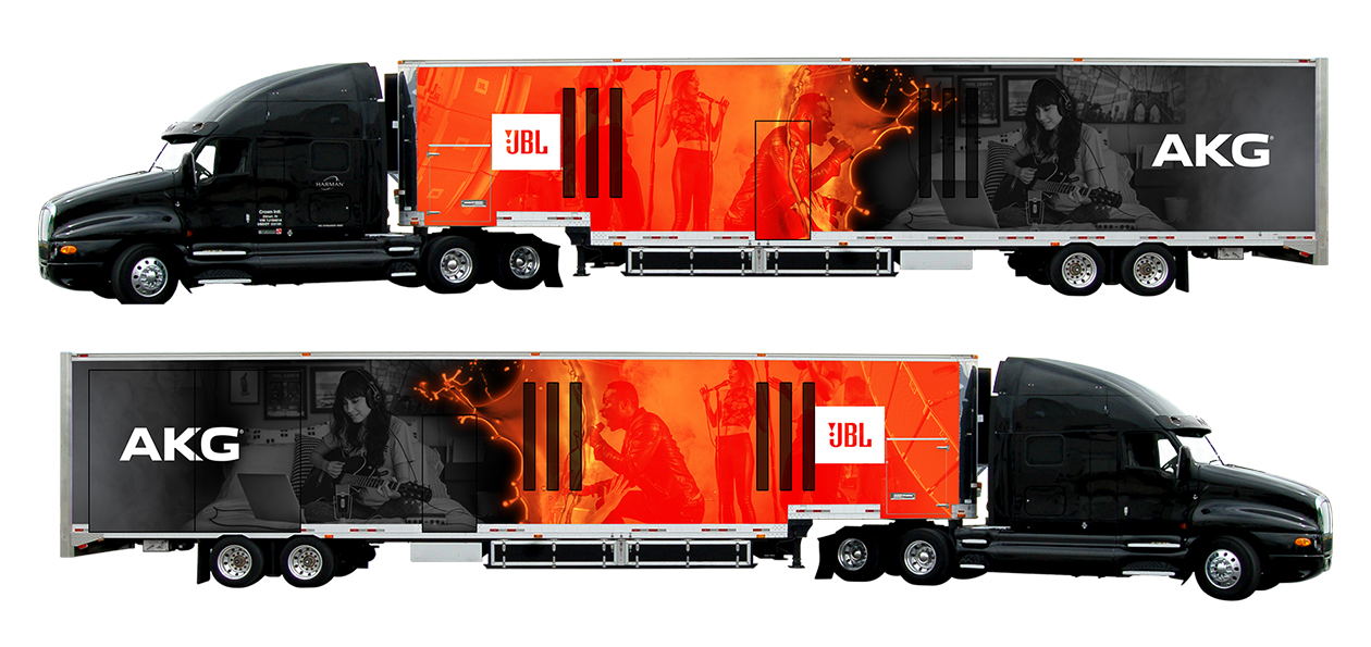I designed the artwork that was applied to HARMAN Professional's mobile product demo truck from 2019-2025. The interior of this trailer functioned as a mobile cabinet of audio curiosities and arrived at tradeshows and other public events loudly. The artwork was appropriately loud, I think. I'm proud to have had my artwork represent the two brands during the truck's travels.